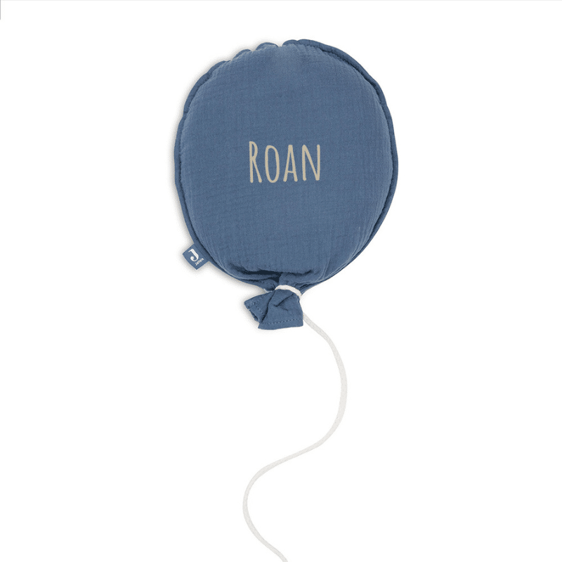 Stoere Jollein ballon in Jeans Blue, optioneel bedrukt met naam. Een mooie en persoonlijke toevoeging aan de babykamer of een uniek kraamcadeau.