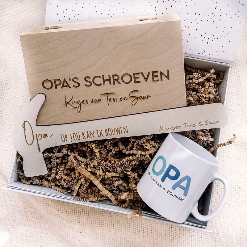 Is jouw opa ook altijd druk bezig met het klussen rondom het huis. Of wil je juist dat opa meer gaat klussen? Dan is deze cadeaubox voor opa de juiste optie om te geven! De producten in de box hebben deels te maken met het klussen. De box heet niet voor niks ‘opa op jouw kan ik bouwen’, want eerlijk op opa kan je toch ook bouwen?