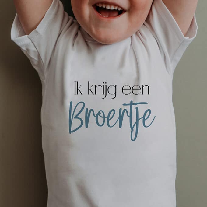 Wil je op een superleuke manier het geslacht van jullie baby onthullen? Ons gender reveal shirt “Ik krijg een broertje” is dé manier om de grote broer of zus actief bij dit bijzondere moment te betrekken. Terwijl onze “Ik word grote broer/zus” shirtjes perfect zijn voor de aankondiging, is dit shirt speciaal om te dragen tijdens de geslachtsbekendmaking. Zo kan het oudere kind het nieuws zelf trots laten zien – hoe leuk is dat?