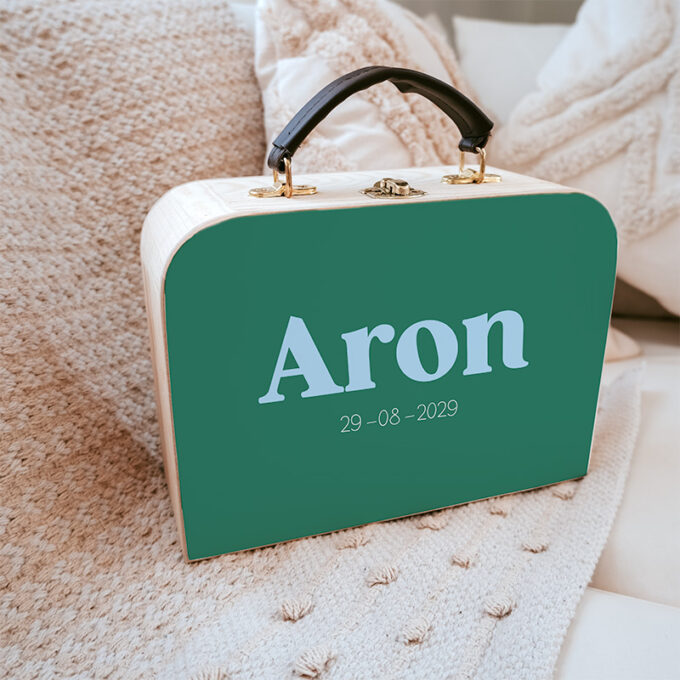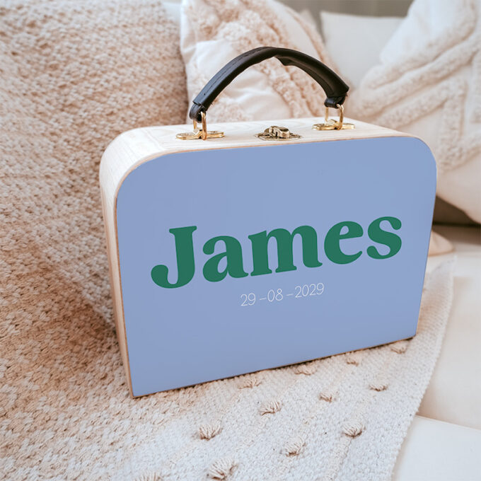 Stoer, stijlvol en persoonlijk – dit houten koffertje met naam uit de Color Vibes-collectie is het perfecte cadeau voor jongens. Gemaakt van stevig hout en voorzien van een leren handvat, is dit koffertje ideaal voor logeerpartijtjes, uitstapjes of als blijvende herinnering op de kinderkamer.