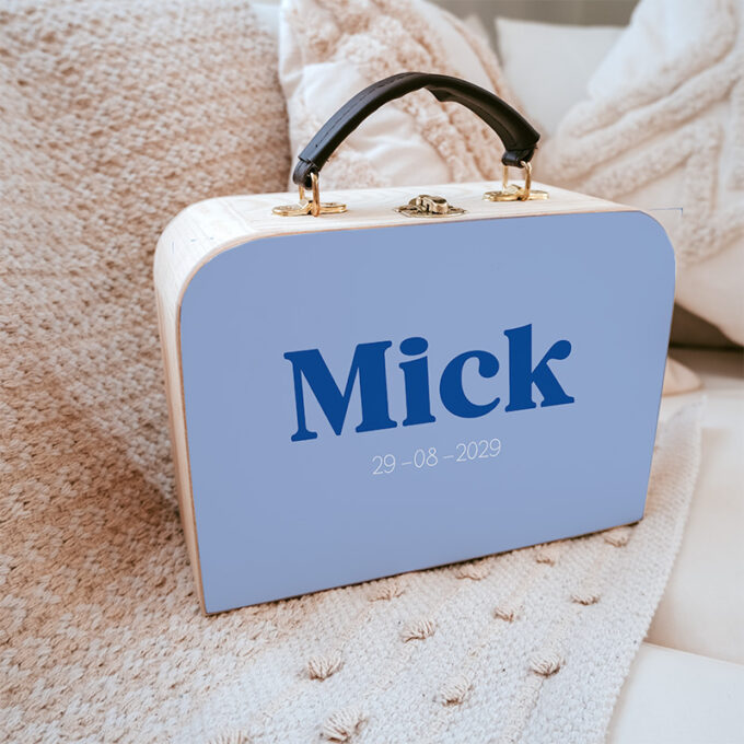 Laat het koffertje personaliseren met zijn naam en eventueel geboortedatum. Handig voor het opbergen van een knuffel, pyjama, tandenborstel of zijn favoriete boekje.