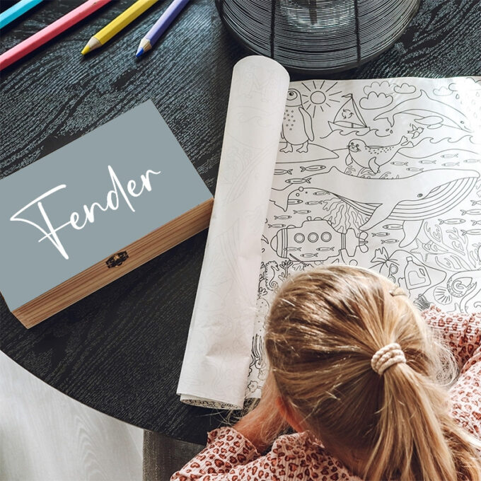 Is er een kleine tekenaar in huis die van stoere kleuren houdt? Dan is deze blauwe tekendoos met naam echt een topcadeautje.