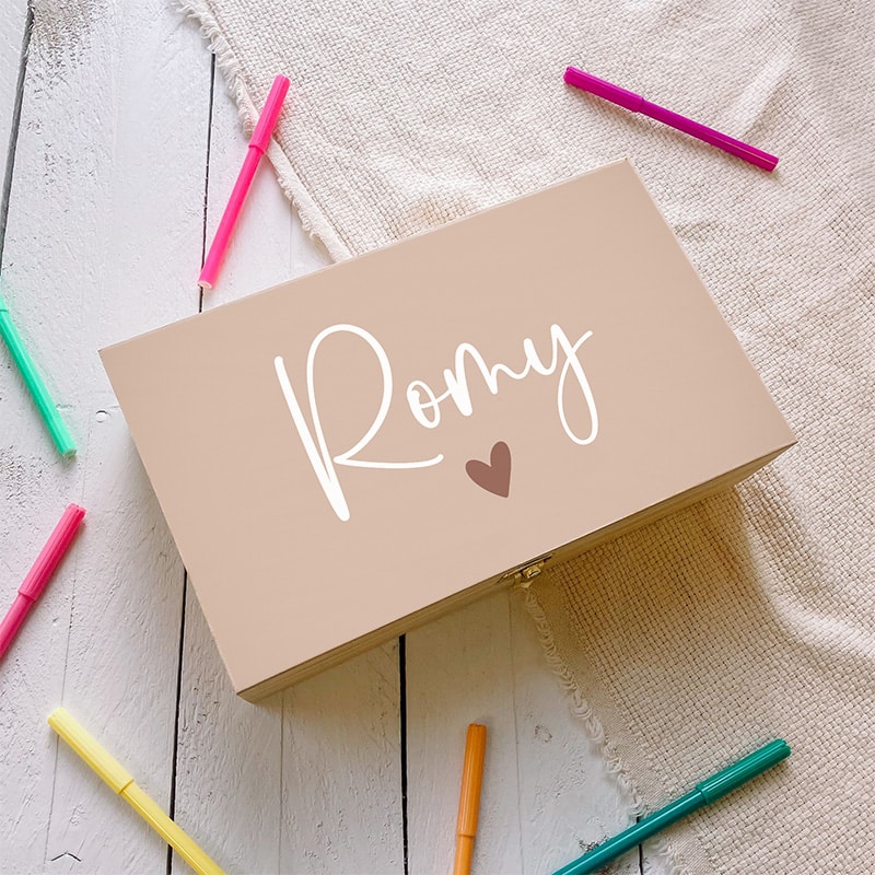 Een lief cadeautje voor een creatief kind: deze houten tekendoos in oud roze met naam is perfect om al die stiften en potloden netjes te bewaren.