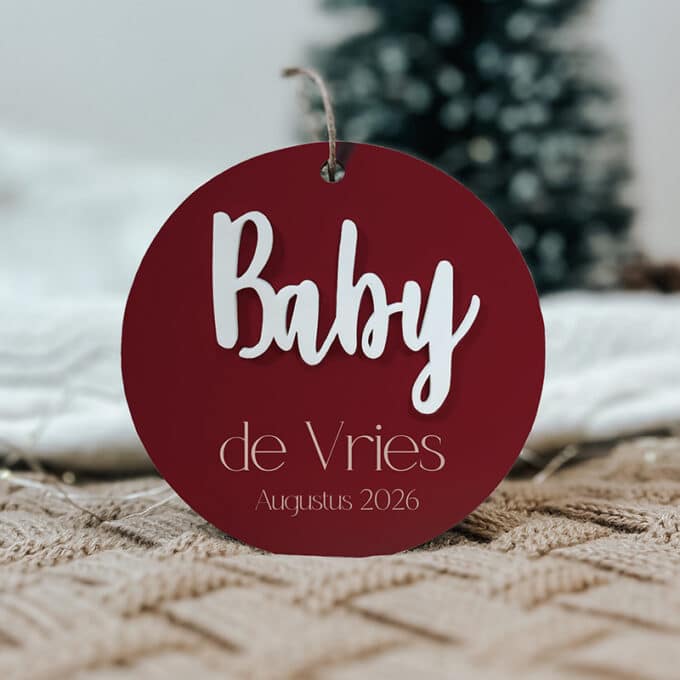 Maak je zwangerschap op originele wijze bekend met deze Kerstbal met zwangerschapsaankondiging.
