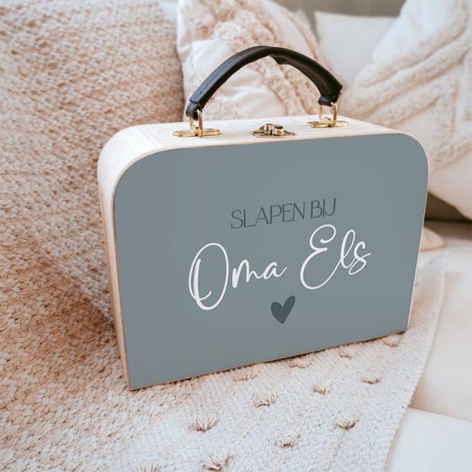 Koffertje Slapen bij Oma – Houten Kinderkoffertje voor Logeerpartijtjes
