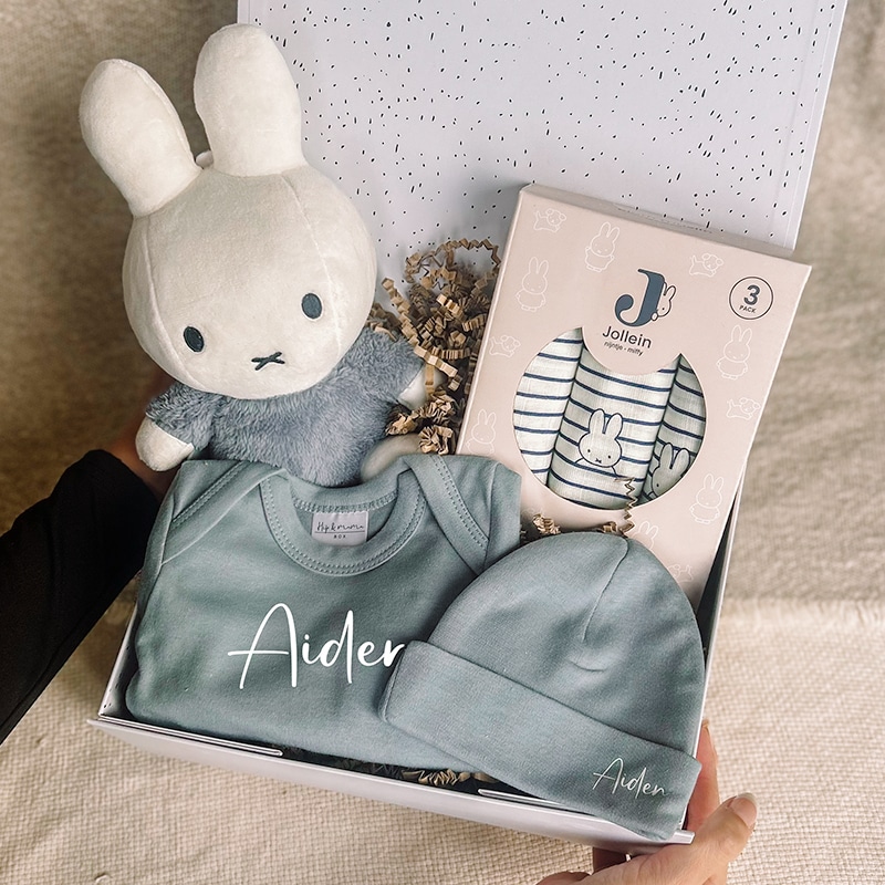 Een lief kraamcadeau met Nijntje waarmee je de kleine jongen extra warm welkom kunt heten! Deze zorgvuldig samengestelde box bevat zachte en schattige items zoals een romper, een Nijntje knuffel, een mutsje en een uitsprakenboekje. Alles is prachtig verpakt in een bewaarbox die een mooie herinnering blijft. Optioneel kun je de box personaliseren met de naam van de kleine, zodat het een nog persoonlijker en onvergetelijk geschenk wordt.