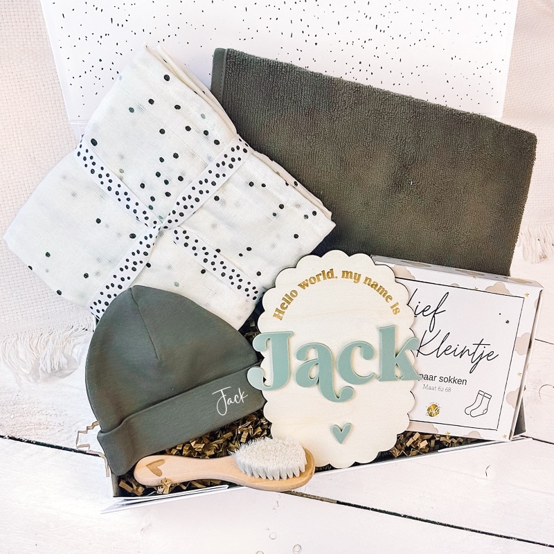 Creëer een glimlach met de betoverende cadeaubox Lief kleintje – groen, de ideale manier om een jongen te verwelkomen in de wereld!