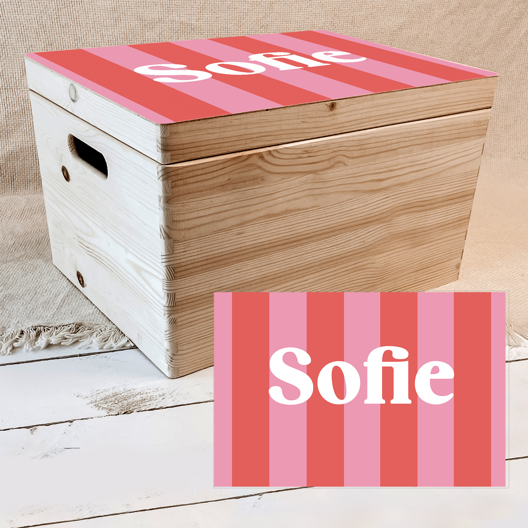 De Color Blocking Stripes – Pink memorybox is dé opvallende en vrolijke bewaarplek voor al jouw kostbare herinneringen. Van de eerste echo’s tijdens de zwangerschap tot de eerste schoentjes en kunstwerkjes uit de peutertijd, alles krijgt een eigen plekje in deze stoere, rood-roze box met frisse witte letters.
