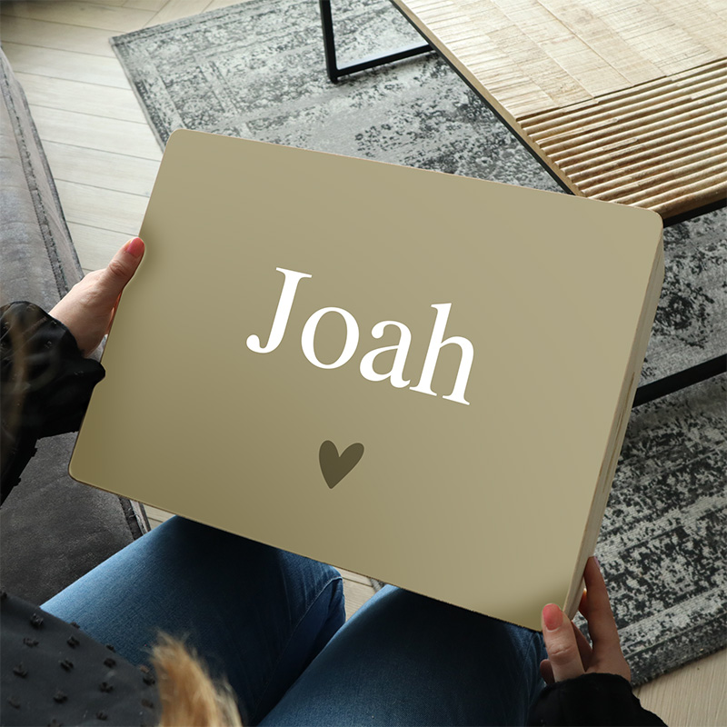 Je kiest zelf het lettertype dat bij je past – elegant of klassiek – en zo maak je de box helemaal eigen. Een bijzonder cadeau voor jezelf of iemand anders, dat jarenlang meegaat.