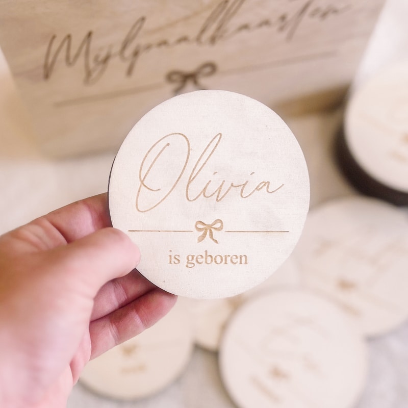 • Een gepersonaliseerde schijf met “(naam) is geboren”