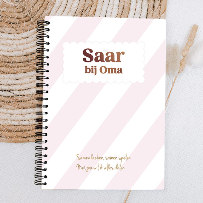 Met het oma boekje met naam leg je alle bijzondere momenten vast die oma en haar kleinkind samen beleven. Van knutselmiddagen en logeerpartijtjes tot de mooiste foto’s en de grappigste uitspraken – alles krijgt hier een speciaal plekje. Persoonlijk gemaakt met de naam van haar kleinkind en verkrijgbaar in zachte pastelkleuren. Een boekje vol liefde om samen in te vullen en later met een glimlach terug te lezen.