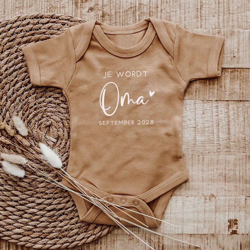 Dit is een fantastische manier om het heuglijke nieuws te delen. Door de romper te personaliseren met de uitgerekende maand, maak je het extra speciaal voor de toekomstige Oma. Stel je haar verraste en ontroerde reactie eens voor wanneer ze de romper ziet!
