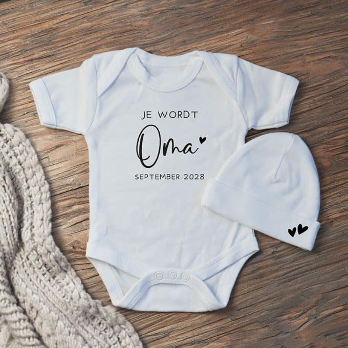 Ben je op zoek naar een unieke en ontroerende manier om aan te kondigen dat er een kleintje op komst is? De romper “Je wordt oma” is de perfecte keuze! Met deze schattige romper maak je de liefste Oma in spé dolgelukkig en creëer je een onvergetelijk moment.