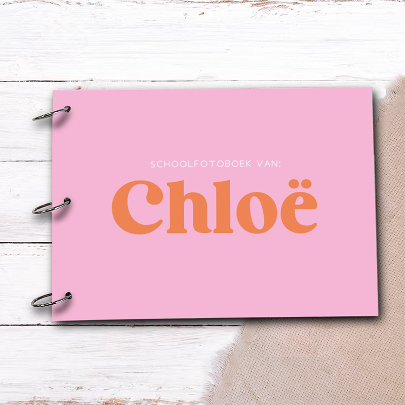 Een vrolijk en kleurrijk schoolfotoboek met naam en ringband – voor al die mooie herinneringen op school!