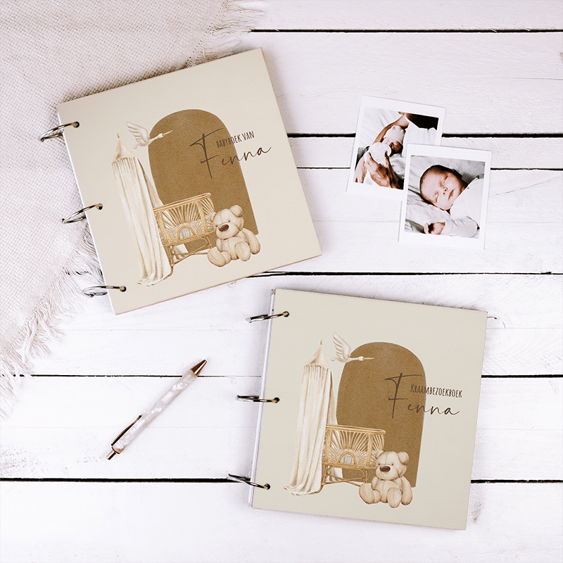 Set babyboek + kraambezoekboek met naam – Beer