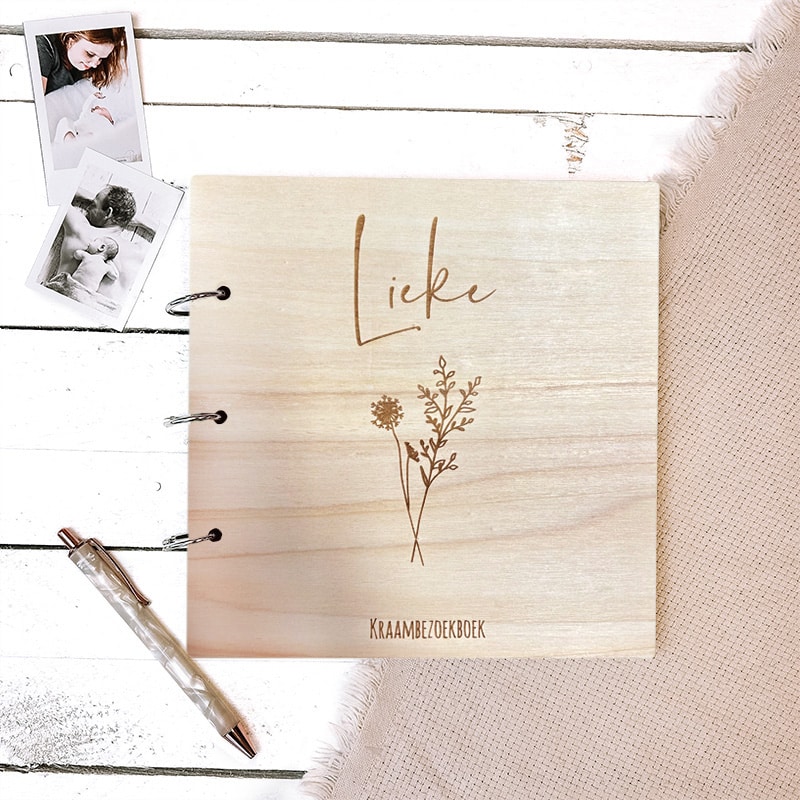 Achterin het boek is ruimte voor foto’s van al het kraambezoek, maar je kunt dit ook leeg laten. Omdat je gekozen hebt voor boeken met ringen, kun je er ook voor kiezen om deze pagina’s te verwijderen.
