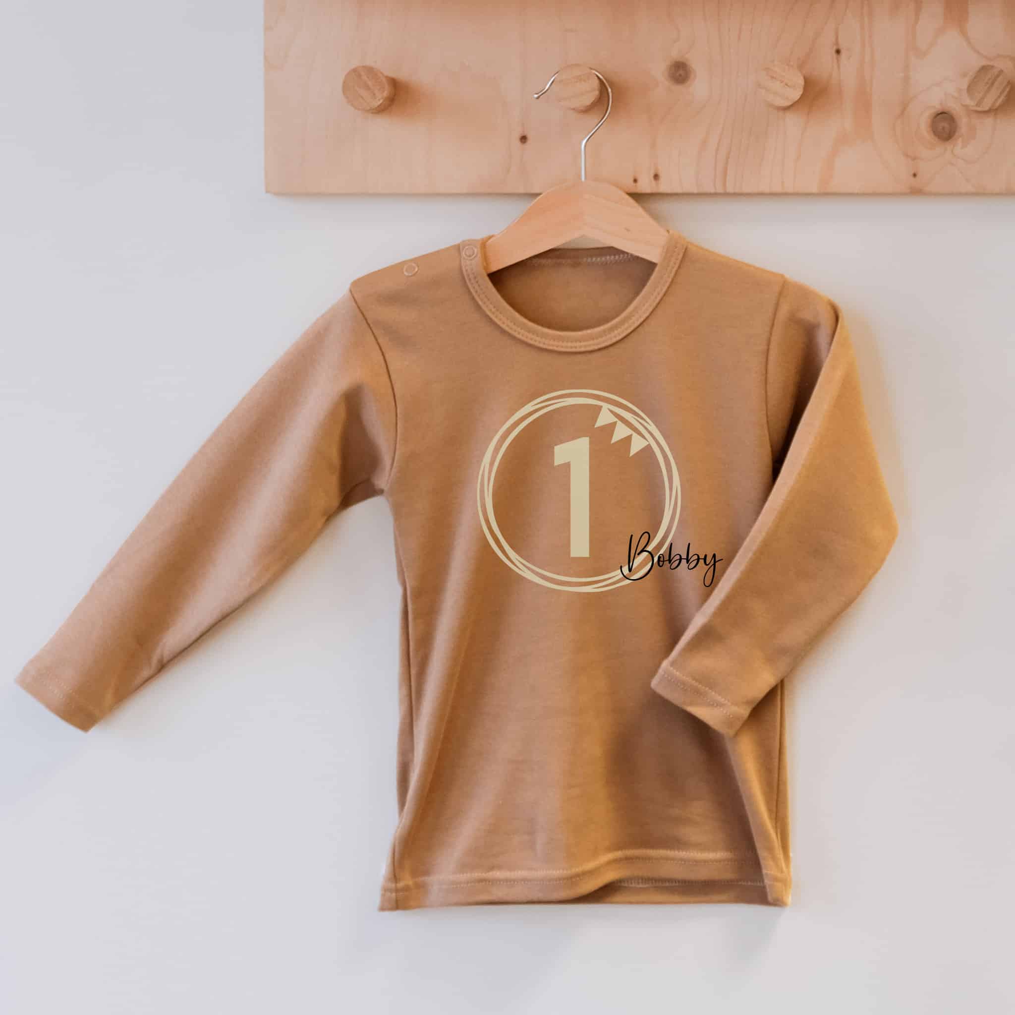 Het shirtje verjaardag is verkrijgbaar in 6 kleuren: roze, sand, cream, zwart, wit en groen en in lange en korte mouw.