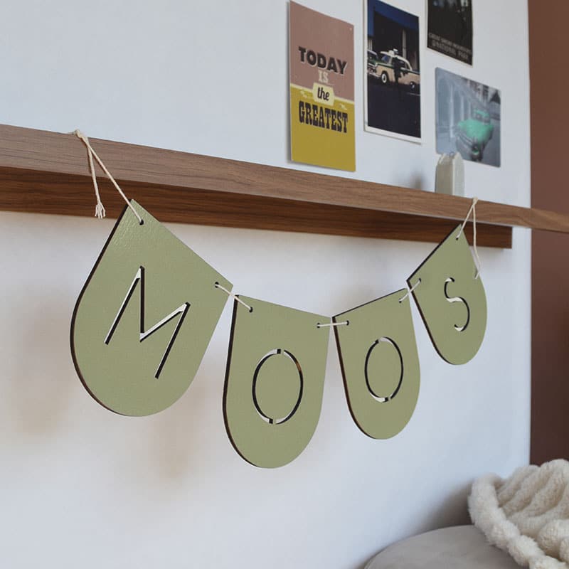 De gepersonaliseerde vlaggenlijn groen is met zorg gemaakt en worden aan een naturel koord geregen, zodat je ze direct kunt ophangen. Dankzij de personalisatie komt de naam altijd exact zoals jij hem wilt – ook met speciale tekens of accenten.