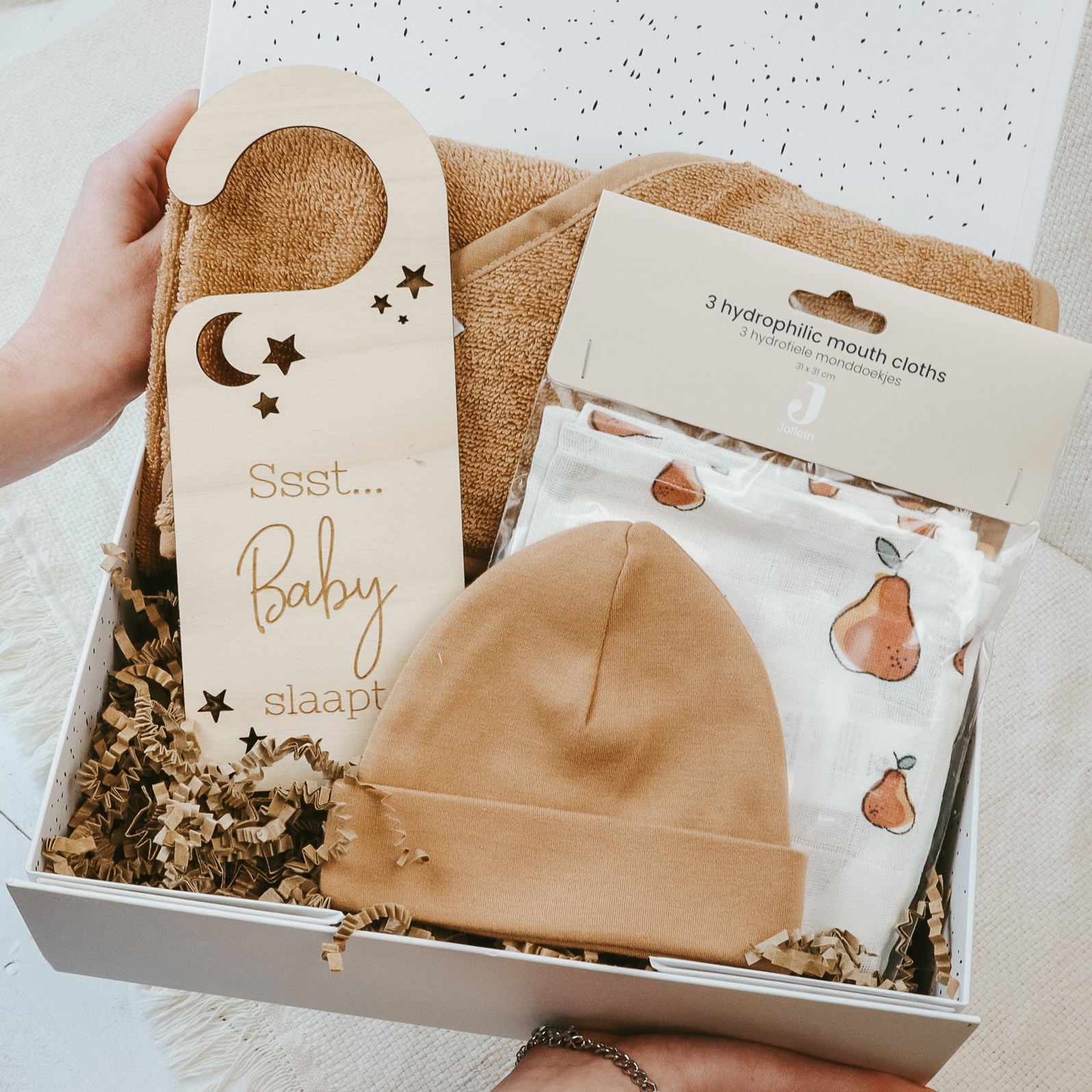 Een luxe bewaarbox, gevuld met mooie naturel tinten. De mooie cadeaubox is tevens bewaarbox om de mooie herinneringen aan de zwangerschap in te bewaren. Verras mommy to be met dit leuke zwangerschapscadeau.